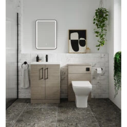 Nuie Arno Solace Oak 600mm 2 Door Vanity Unit With 30mm Profile Curved Basin – ARN2503G