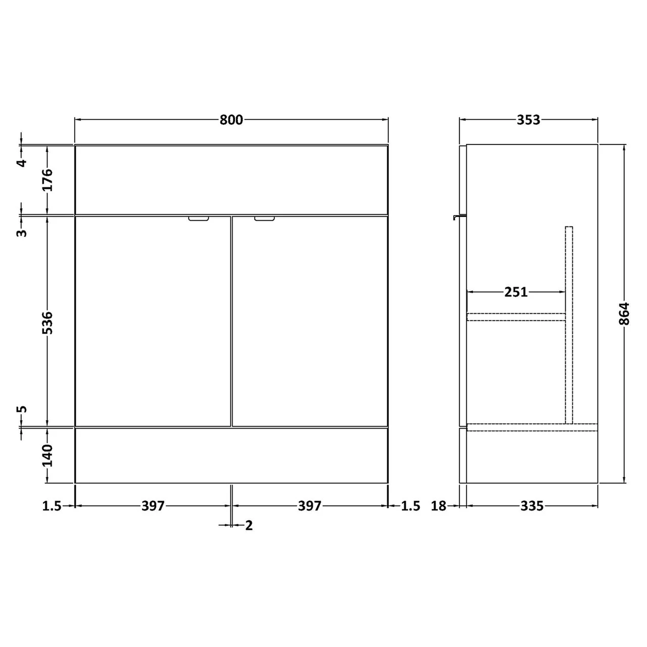 - This unit has soft close doors which limits the daily wear and tear and provides a quieter closing action