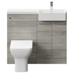 The gloss grey pearl finish adds luminance to your bathroom, creating a more spacious and inviting atmosphere, while the modern touch is heightened by the inclusion of a matt black handle on the bathroom side cabinet.