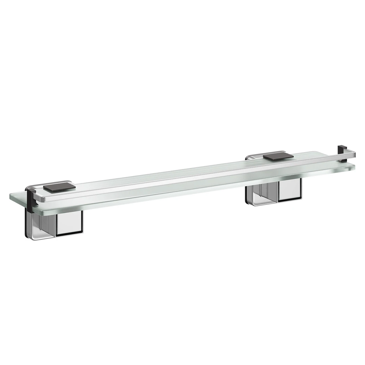 With a glass shelf and chrome fixtures, this vanity shelf brings a sense of contemporary beauty that works well with minimal bathroom interiors. A simple bathroom accessory to create a statement.